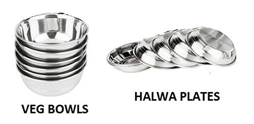 SS Dinnerware Set / Serveware Contains: 6 Thali 12 Katori 6 Glass 6 Halwa Plate 12 Tea Spoon