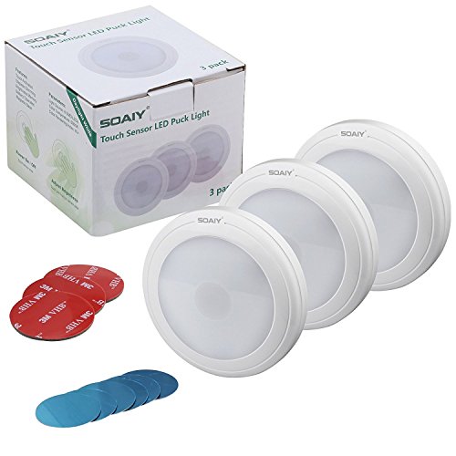 Soaiy New Version Ultra-thin Touch Sensor LED Tap Battery Powered Stick-on Touch Detected Night Lights for Cabinet, Closet, Car, Storage Room, Utility Room – 3 packs (Daylight White)
