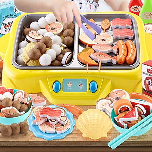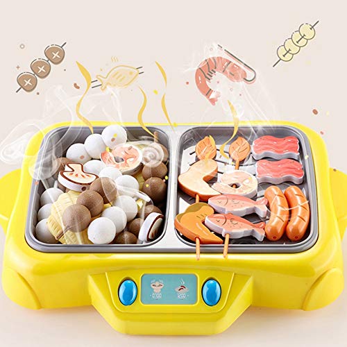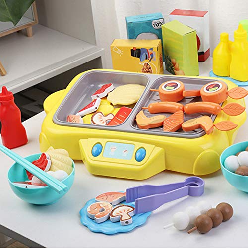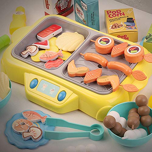 Design: The kitchen toy set contains the functions of simulation hot pot and barbecue stove that has spray, light and music effects