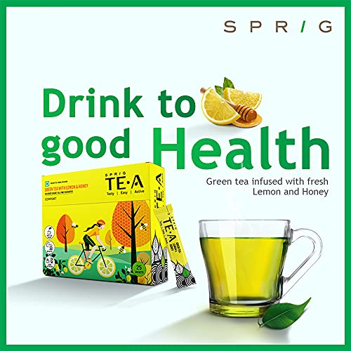 SPRIG TE.A Green Tea with Lemon & Honey | Fully Soluble Green Tea | The Comfort Green Tea That Lifts Spirits | Experience The Zingy Aroma |( Pack of 25 x 0.7g each )
