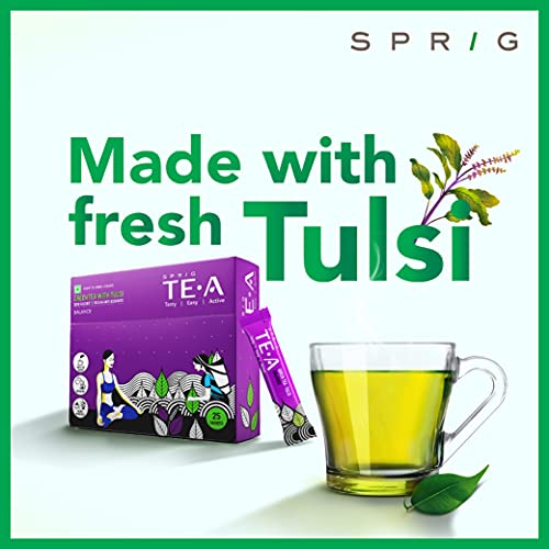 SPRIG Green Tea with Tulsi |Fresh Tulsi| Fully Soluble Green Tea |Low Bitterness | Antioxidant Rich |Boost Immunity| Reduce Stress and Anxiety |No Additives |25 Sachets