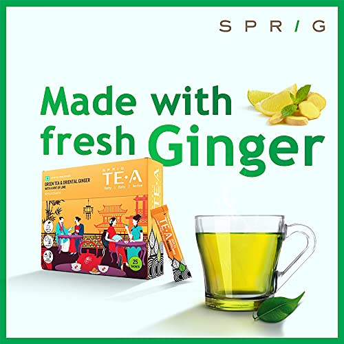 SPRIG TE.A Green Tea with Oriental Ginger | Made with Fresh Ginger | Low Bitterness | 100% Soluble Green Tea | Rich in Antioxidants and Vitamin C | Relief from Nausea, Indigestion & vomiting | Aids in weight loss | Immunity Boosting | No Chemical Additives | Pack of 25