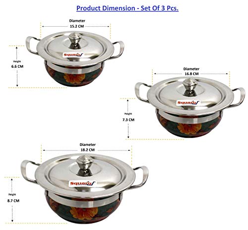 Package Contains: 3 Pcs Color Printed Stainless Steel Handi Set with Lid.