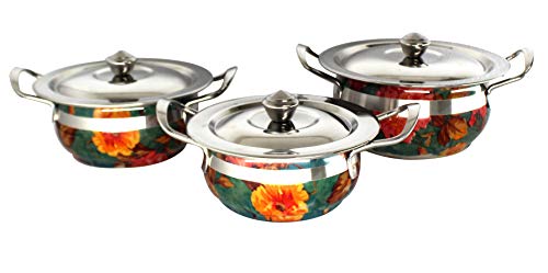 Package Contains : 3 Pcs. Stainless Steel with Color Printed Handi Set with Lid.(Multi Color & Design – As Per Available )