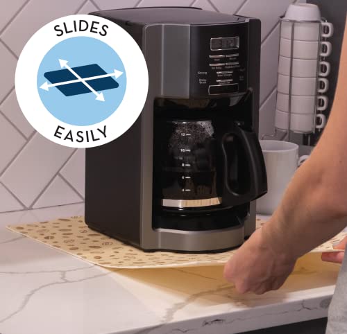 Coffee spill mat helps keep counter and coffee station clean while being able to easily slide your coffee maker to refill the water