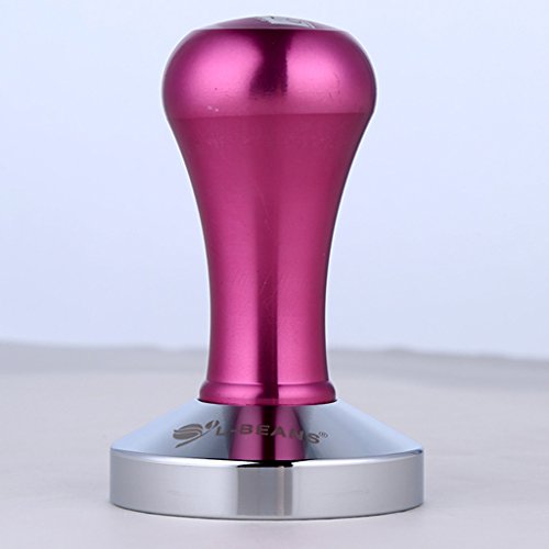 Tamper helps compacting ground coffee beans in a filter cup before use.