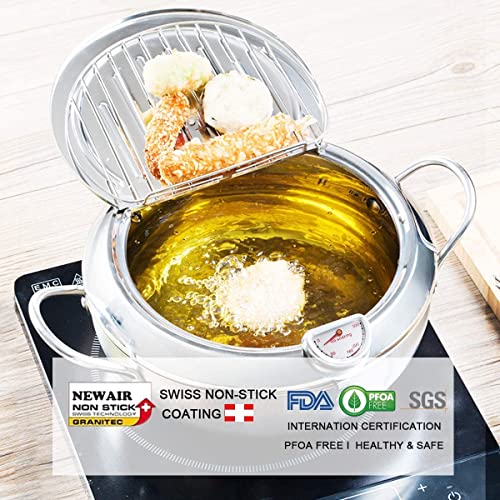 âś…Non-Stick Coating: Our non-stick tempuro Fryer is featured as easy-release and uniform, fast heat conduction. And the coating will not peel or flake off. Also, the material is PFOA and PFOS free, it does no harm to health so you can enjoy healthy food cooked by it.
