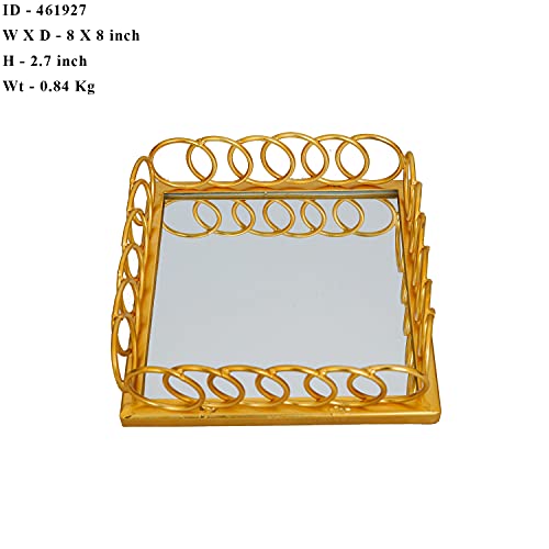 StatueStudio Tray Can be Use: As Snack Tray, Drinks Tray, Kitchen Tray, Appetizer Tray, Nesting Tray, Home Decor Displays, Party Platter And Tray. Enamel Print Tray on top of your coffee table or display your favourite books and trinkets on top, or use it as a cocktail tray for serving and entertaining family and guests. Perfect Gift for House warming , Thanksgiving, Birthday, Holiday, Wedding Anniversary, Mother’s Day, Christmas, Diwali and other Occasions. Care Instructions: Never use any harsh chemicals or never rub it with any rough surface, Wipe it with clean piece of dry Cloth… Product Code – 461927, Finish – Golden, Material – Mix Metal (Brass/Aluminium/Iron) Product Diemension (In Inch) – (8 X 8 X 2.8 Inch), Weight (In Kg) – 0.75 Spacious Metal Tray – These Decorative Mix Metal Serving Tray is Great For Kitchen Decoration, Can be Used For Storing Various things in the Kitchen Along Great Look. Best For Serving – These Metal Kitchen Tray For Serving Can Also be Used as Breakfast Tray, Tea Tray For Serving, Serve Food On Birthday Parties and Many More. Easy to Maintain – This Metal Serving Tray For Dining Table is made of Brass Aluminnium & Iron (Mixed Metal) rustproof Corrossion resistant Metal. Just Wiped with Clean Cloth Only.