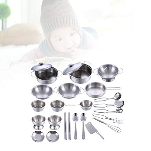 Made of high quality hand-polished stainless steel, realistic sets just like parents use, can be used for longer.