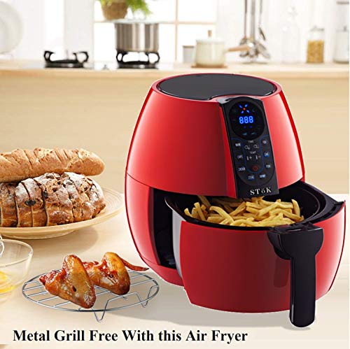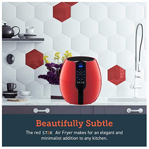 SToK 4 Liters 1500W Smart Rapid 3D Air Technology Digital Air Fryer With Double Layer Grill, Red