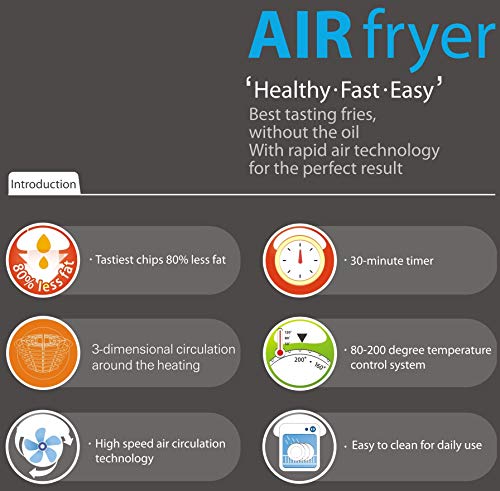 EASY TO COOK – Built in digital one-touch screen menu featuring 8 presets-Steak, Fish, Cake, Chicken leg,Shrimp, Chips, Ice chip. Just tap and go! Super easy to use! And 85% less oil than traditional fryers, but deliver the same deliciously crunchy taste of fried food with little to no oil. Also no oil fumes in house. Let your lover eat healthier.