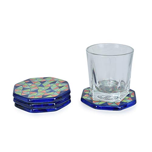 StyleMyWay Handpainted Coasters in Ceramic- Set of 4 | Coasters for Coffee Table | Dining Table Coasters | Tea Coaster | Set for Office Drink Coasters | Bar Accessories