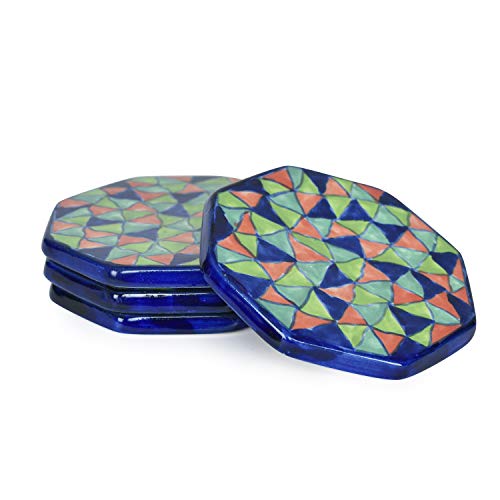 StyleMyWay Handpainted Coasters in Ceramic- Set of 4 | Coasters for Coffee Table | Dining Table Coasters | Tea Coaster | Set for Office Drink Coasters | Bar Accessories