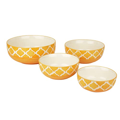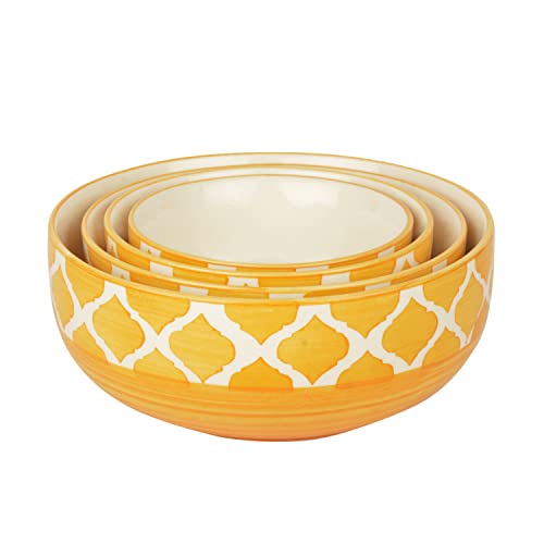 Be the first to review “StyleMyWay Studio Pottery Handpainted Dinner Serving Bowl Set (Set of 4, Mustard Yellow and White) | Dinner Serving Donga Set | Stackable Kitchen Bowl Set (Ceramic)”