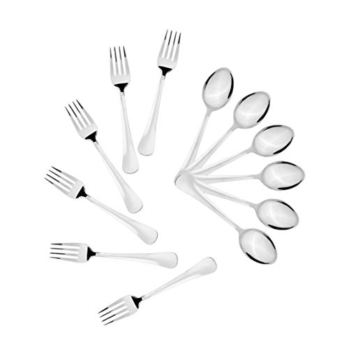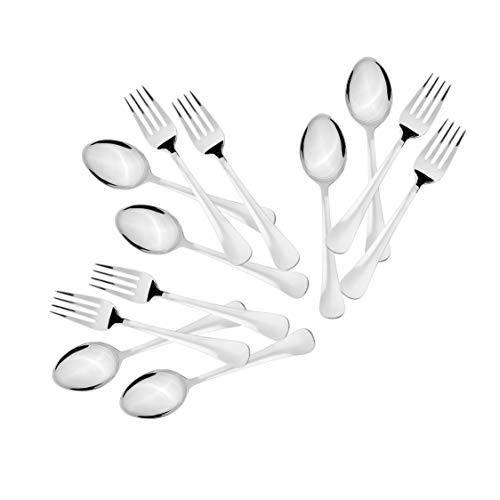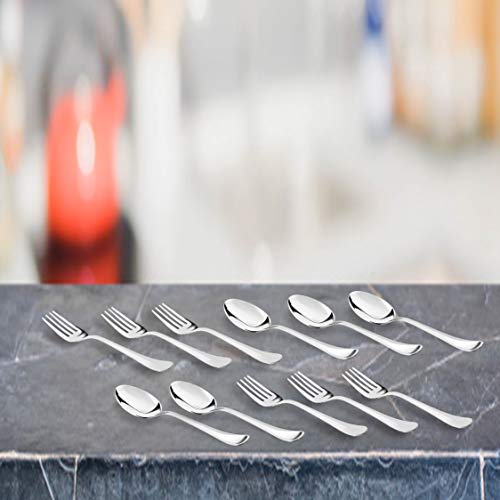 Sumeet Stainless Steel Spoon and Fork Set of 12 Pc (Baby/Medium Spoon 6 Pc (16cm L), Baby/Medium Fork 6 Pc (15.5cm L))– (1.6mm Thick)