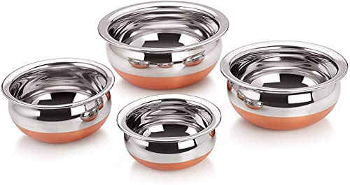 Set of five copper handis for everyday use Aesthetic design with mirror polish steel finishing Thick gauge copper base for long lasting durability
