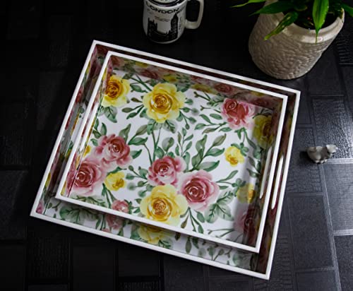 Swakala Sqaure Wooden Tray for Breakfast Coffee Serving, Table Decor, Gifts, Standard Large size 12 x 12 Cm x 1 INCHES. It gives them an indigenous appearance and helps in creating an exceptionally elegant appearance. This wooden tray is ideal for serving food, decorating your home & cutting clutter in any space. The high sides will stop your little bowls from sliding off. You can display them on a coffee table to hold candles & vases. The tray can also be used to decorate the buffet tables. It will adds elegance to your Kitchen, Bar, Bedroom, Dining Area, Family Room,Garden, Tea Or Coffee Lounge. Handmade Sheesham Wooden Tray for Serving Tea, Kitchen Use, Dinning Décor. Handmade wooden tray for Dinning use, Square shaped, kitchen storage, serving tray,Gifts for Wedding, dinning Décor