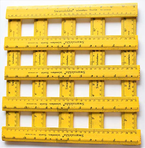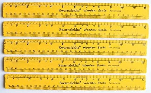 Swarnalekha 5 Pcs Wooden Scale Ruler, 30 cm / 12 inch Length Wooden Scale Straight Measuring Tool for School Students (Pack of 5)