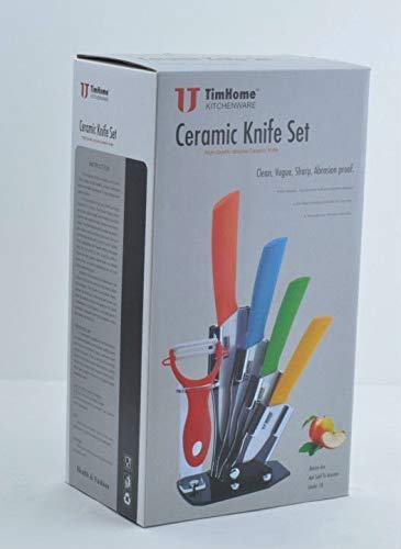 PACKAGE INCLUDED:6″ Ceramic Chef Knife, 5″ Ceramic Utility Knife, 4″ Ceramic Blade Paring Knife, 3″ Ceramic fruit Knife, Ceramic Peeler, Acrylic Knife Stand