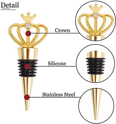 Easy To Use: Easy to insert and remove, just press the cap onto the neck of the bottle. And the gold crown cork plug alcohol soda bottle cover is adorned on top of the bottle caps, reusable and durable.