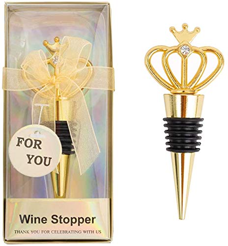 SYGA Alcohol Wine Stoppers Decorative Crown Alloy and Silicone Vodaka Bottle Stopper Metal Beer Cork Plug Cover Beverage Soda Bottle Holder for Wedding Valentines Day Home Kitchen Bar Tool-Gold, Crown