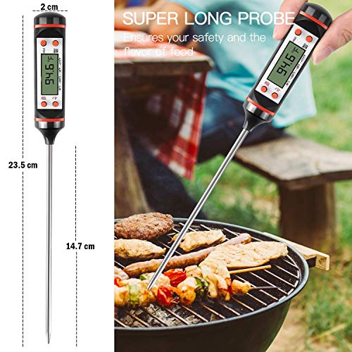 【SUPER LONG PROBE】Kitchen Thermometer with 5.8″ super long, food grade 18/8 stainless steel probe to keep your hands away from the heat and avoid dangerous situations! The tip of the probe should be in the thickest part of the food, but not touching tip, which conducts heat and gives an underestimate of the food temperature.