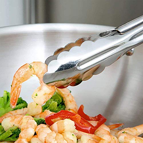 Durable stainless steel Tong: Convenient to use to pick up various food in the buffet, bar or even parties.eatures large clasping plates for secure hold.This 9 inch long tong is commonly used for the grills and pans, also used for almost all purposes, Heat resistant, anti-rust, anti-corrosion, light weight, easy to handle, like new forever. This kitchen tongs set has locking mechanism, pull the ring for lock and push for unlock, super easy operation. Hang them with the hanging loop after use or