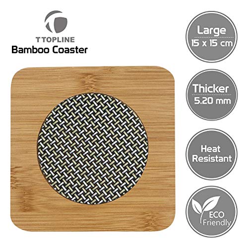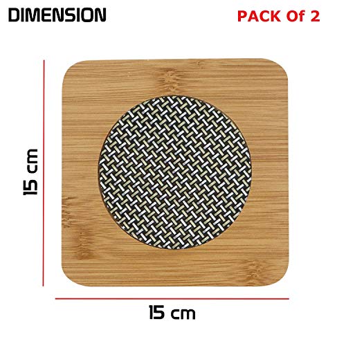T TOPLINE Square Eco-Friendly Bamboo Wooden Coasters for Home Pan Pot Holder for Dining Table Heat Pad for Kitchen – Pack of 2