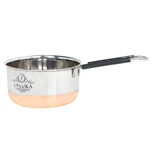 Product description: taluka sauce pan high polish, superior finish, food grade dishwasher safe , strong and sturdy easy to wash and clean color: silver, material: stainless steel and copper bottom