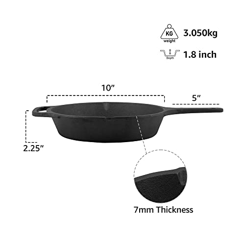 TAZBI Heavy Cast Iron Skillet 26 cm Dia, Pre-Seasoned, for Gas Stove, Induction, Oven (Black)