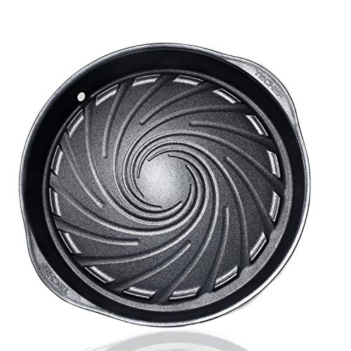 GOOD INNOVATION – The unique swirled channel design helps oils drain slowly to give food more flavor