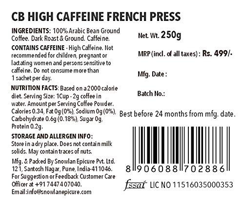 Be the first to review “Teddy Roosevelt High Caffeine French Press Coffee Powder, Arabica Dark Roast Coarse Ground, 250g”