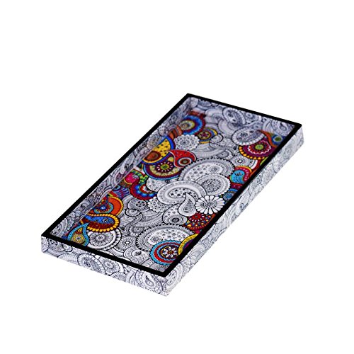 The Bombay Store – Doodle Mandala Rectangle Mini Tray with Digital Print & Enamel Coating on MDF Wood – 15 cm x 30 cm x 2.5 cm