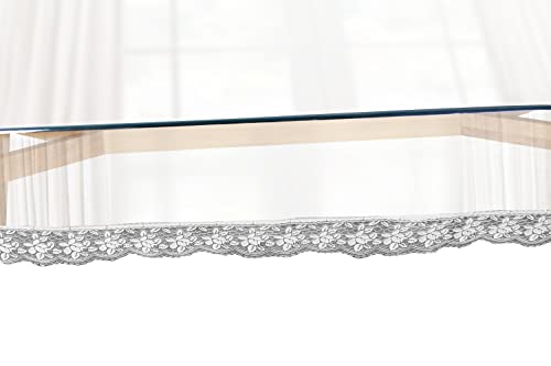 The Furnishing Tree Rectangle Shaped 12 Seater Transparent Table Cover WxL 60×140 inches 0.25 mm Thickness with Silver Lace
