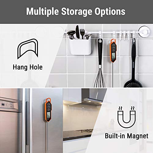 ThermoPro TP-01H digital meat thermometer is an easy and effective cooking tool to get the most accurate temp in 4-6 seconds.5.3″ super long food grade stainless steel probe with Step-down Tip ensures the most accurate readings possible(±0.9°F),while also keeping your hands away from the heat when cooking at the grill or in the oven.By using the food thermometer,you can ensure the temp every time you’re grilling or cooking and make your meal taste like it was prepared by a professional!
