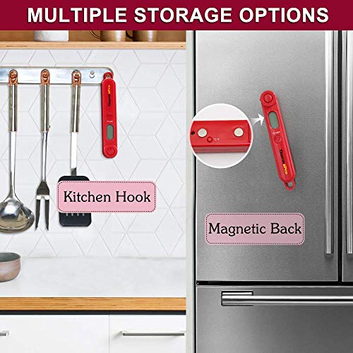 EASY TO USEKitchen Thermometer with foldable probe design folds away easily and locks into base for portability and storage