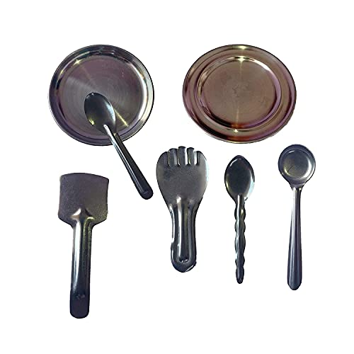 Material: Stainless Steel and Plastic. Not Suitable for Small Baby. It is a Mini Stainless Steel Utensils Role Play Toy for kids (Not for real cooking)