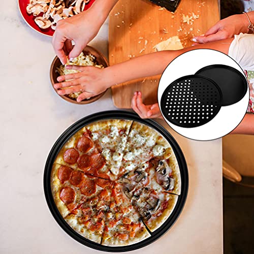 TOPBATHY Pizza Pan Round Carbon Steel Pizza Baking Pan Non- Stick Cake Pizza Crisper Server Tray Stand for Home Kitchen Oven Restaurant Pizza Bakeware 32cm