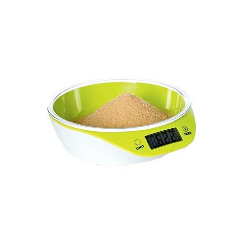 Electric Kitchen Scale 5kg Capacity 1g Graduation Large LCD Display TARE Function Overload Indicator Touch Button Control Battery Powered (CR2032 x1) Auto OFF / Auto Zero 5kg kitchen scale features a sleek modern compact design with removable ease to clean container. The Tare function resets the scale to zero when an empty container is placed, accurately weighing only the content. This feature allows you to use different containers of your own preference to weigh. Highlights: Electric Kitchen Scale 5kg Capacity 1g Graduation Large LCD Display TARE Function Overload Indicator Touch Button Control Specifications: Type: Electric Kitchen Scale Capacity: 5kg Graduation: Accuracy: TARE Function: Yes Auto OFF: Yes Auto ZERO: Yes Low Battery Indicator: Yes Overload Indicator: Yes Control: Touch Button Battery: 3V (CR2032 x1) Dimensions: 84mm x 60mm x 210mm Weight: 300g Contents: Scale, Bowl, Manual