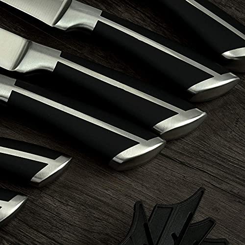 This knife set’s includes paring, utility, carving, bread, meat, and vegetables knives that makes meal prepping easier, faster, and more enjoyable for every skill level.