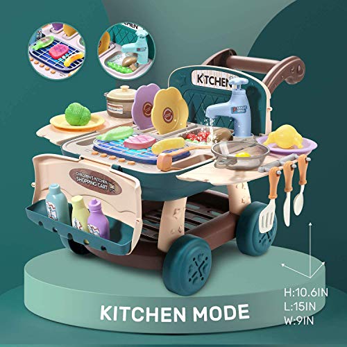 âś… High Quality Material : The Kitchen toy shopping cart playset set is made of ABS, durable washable.Shopping cart shape is easy to handle and grab,can store all of the play food and kitchen accessories in storage space,encouraging your child to keep his or her kitchen accessories organized