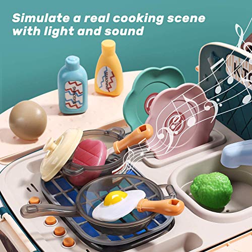 âś… Play Kitchen Accessories : Play sink pours an appropriate amount of water into the water tank, press the faucet, children can wash vegetables in the sink, the water in the sink can also be recycled, lets the baby develop good cleaning habits.
