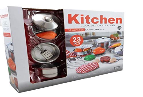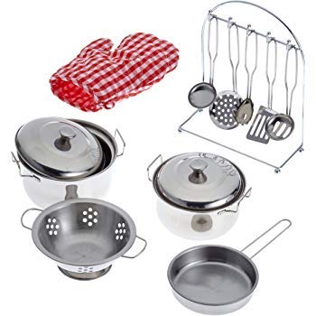 Role play toy for children who love helping in the kitchen, this quality stainless steel set is a great starting point for those budding young chefs Set contains