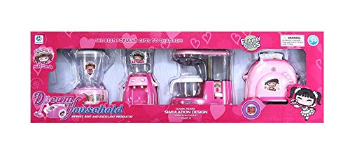 Battery Operated Set of 4 Pieces Household Home Appliances Play Sets Toys for Girls || Coffee maker, Water dispenser, Mixer, Toaster. The Mini Dream Household Kitchen Toy Play set makes a great addition to any toy collection!