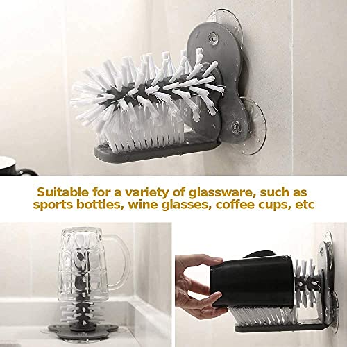 TRAY Water Bottle Cleaning Brush Glass Cup Washer with Suction Base Bristle Brush for Beer Cup, Long Leg Cup, Red Wine Glass and More Bar Kitchen Sink Home Tools Grey