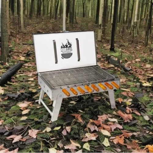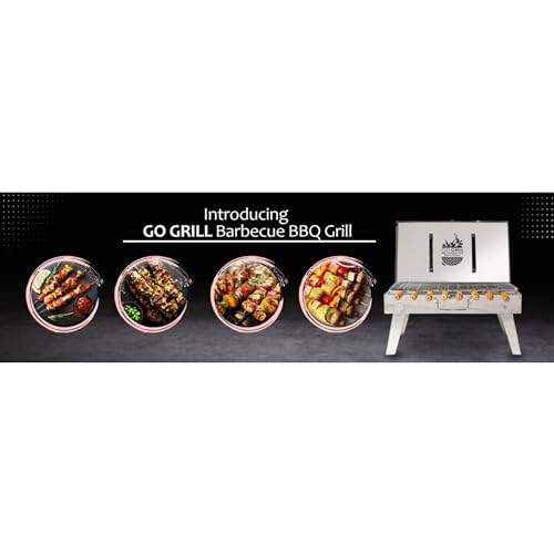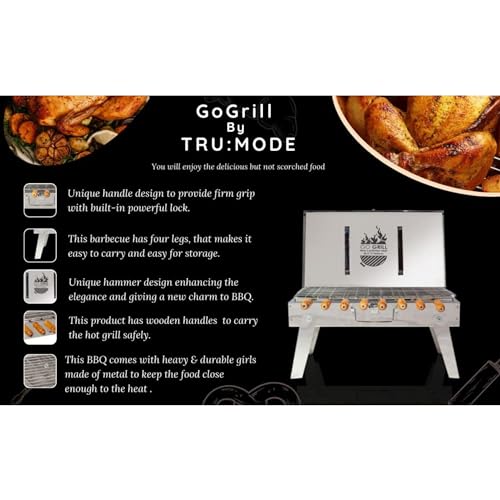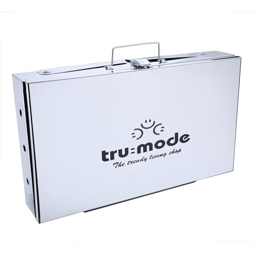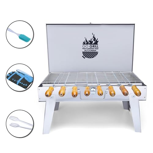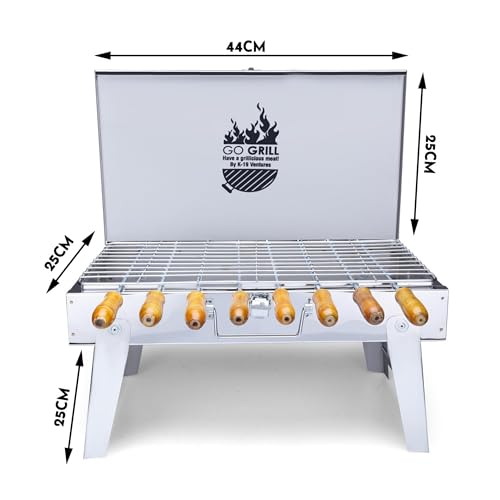 TRU : MODE Briefcase Foldable Charcoal Tandoor Grill Barbeque Set (Combo Of 8 Skewers, Tong, Glove, Oil Brush And Small Bbq Recipe Booklet),44 X 25 X 20 Centimeters, Silver, Free Standing