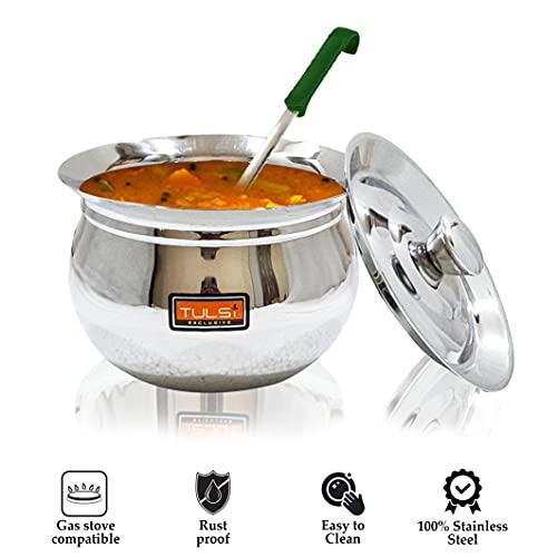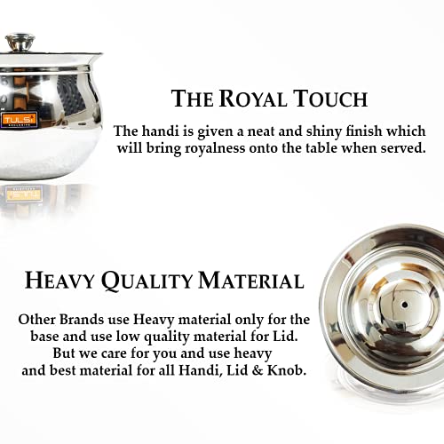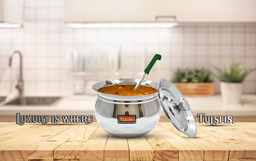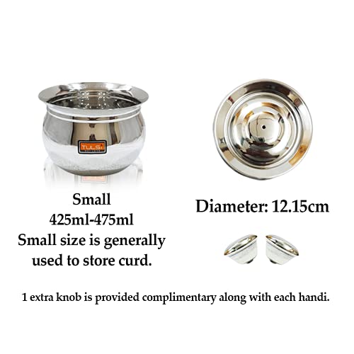TULSI Stainless Steel Handi Set (Heavy Gauge) with Lid & Knob, Single Handi, for Cookware and Serveware, (Gundu/ Tomato Handi, 425ml)