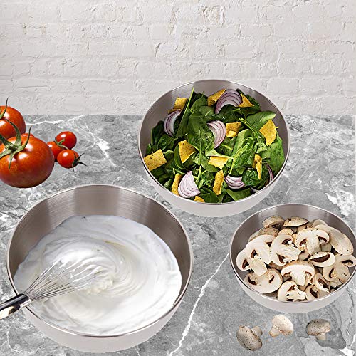 STAINLESS STEEL QUALITY- features an attractive mirror finish outside & Inner matte finish for an elegant look enhancing your kitchen tools, these metal bowl set are easy to clean, as well as odorless, stain and taste resistant;