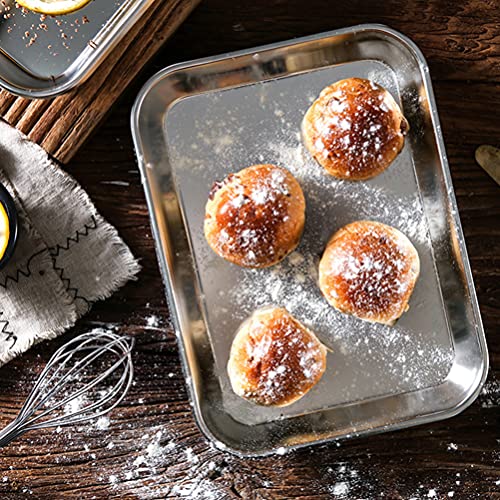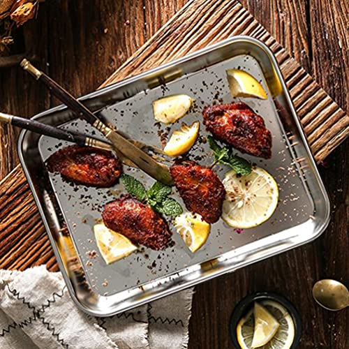 UPKOCH Baking Flat Pan Stainless Steel Baking Tray Oven Roasting Bread Cookie Pan Non Stick Toaster Tray Food Sushi Serving Sheet 23X17CM