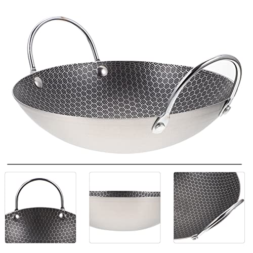 Small Stainless Steel Frying Pan with Double Handles Honeycomb Wok Stove Use Hot Pot Restaurant Soup Outdoor Ramen Pan 9inch
